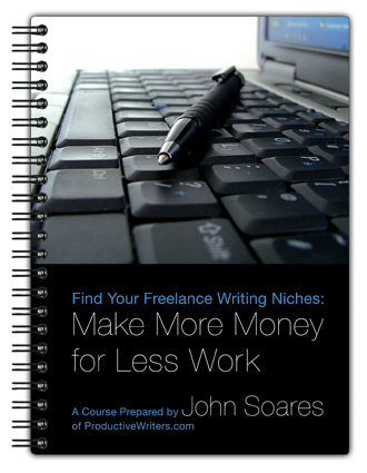If you are a beginner in writing, you may be interested in purchasing a book by John Soares on freelance writing titled Make More Money For Less Work